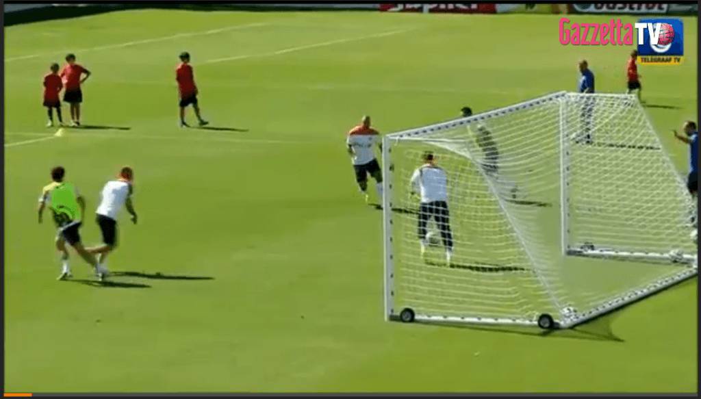 VIDEO ROBBEN OLANDA LITIGIO- C’è tensione nel team dell’Olanda. A pochi giorni dalla partita contro la Spagna si respira un’aria pesante nella compagine orange in Brasile. Protagonista è l’attaccante Robben, che litiga con un compagno di squadra. Durante l’allenamento l’ala del Bayern Monaco è stato oggetto delle attenzioni di Bruno Martins Indi che stava prendendo molto seriamente la partitella. Il difensore è entrato male su Robben che dolorante ha subito il colpo. Appena trovata l’occasione l’attaccante ha reagito intervenendo a sua volta in maniera scomposta sul compagno di squadra, facendolo cadere a terra e ha continuato nella sua reazione spintonandolo. Alla fine dell’allenamento Robben ha fatto il gesto del pollice in su, stemperando così l’accaduto.
