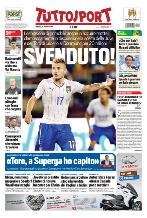 TUTTOSPORT IMMOBILE – Su Tuttosport si parla della cessione di Immobile, secondo molti esperti il giocatore è stato svenduto da Torino e Juventus.