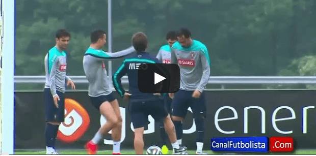VIDEO CRISTIANO RONALDO – Dopo essere stato sulle prime pagine di tutti i giornali per un presunto malocchio fattogli da uno stregone africano e che avrebbe messo a rischio la sua incolumità fisica durante i Mondiali 2014, Cristiano Ronaldo, tornato ad allenarsi regolarmente, torna alla ribalta per uno spettacolo che ha messo su durante l’ultima sessione d’allenamento del suo Portogallo. Sotto gli occhi divertiti dei compagni, infatti, il fuoriclasse del Real Madrid, inventa una serie di passi di danza che diventeranno un tormentone ai prossimi Mondiali e che Cristiano Ronaldo potrebbe utilizzare come esultanza in caso di gol. Quello dell’asso portoghese è uno vero e proprio show! Guardare per credere!