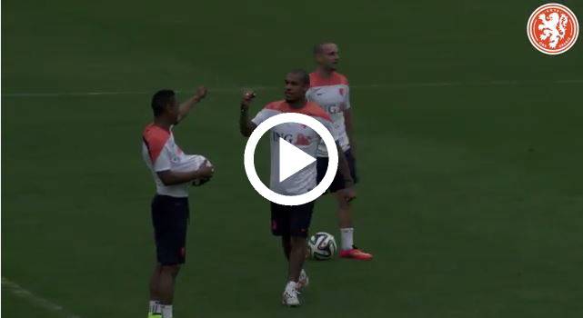 VIDEO OLANDA GARA PUNIZIONI VAN PERSIE SNEIJDER ROBBEN – Si sta preparando al meglio, per il mondiale 2014, l’Olanda allenata da Louis Van Gaal. La squadra oranje, dopo il secondo posto di 4 anni fa, spera di poter addirittura migliorare quel risultato, sebbene i pronostici non la vedano partire come favorita del torneo. Intanto, durante il ritiro brasiliano della squadra, i fenomeno olandesi stanno dando spettacolo, mostrando numeri da veri fenomeni. Non ultima, la gara di punizioni di qualche ora fa tra Van Persie, Sneijder, Robben e De Jong? Chi vince? Decidetelo voi…