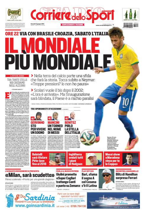 CORRIERE MONDIALE – Anche il Corriere dello Sport apre con l’inizio dei Mondiali, stasera prima partita tra Brasile e Croazia ore 22.