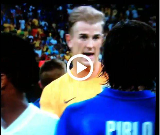 VIDEO INGHILTERRA ITALIA HART PIRLO PUNIZIONE – Resterà certamente nella storia dei mondiali il meraviglioso calcio di punizione di Andrea Pirlo, che durante Inghilterra Italia, a pochi minuti dal termine della gara, con una “maledetta” stava per sorprendere Joe Hart. La reazione dell’estremo difensore inglese è però quantomeno sorprendente, visto e considerato l’ultimo incrocio tra i due quando Pirlo battè Hart con un cucchiaio su calcio di rigore. Hart ha invece a fine gara mostrato il suo rispetto, come dimostra questo video tratto da Vine che vi proponiamo. Per chi non comprendesse il labiale di Hart, la frase detta è “Wow fu**ing hell”, un modo molto colorito per fare i complimenti a Pirlo per la magia da fermo.