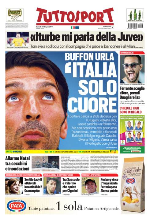 TUTTOSPORT ITALIA – Su Tuttosport si parla dell’urlo di Buffon che chiede all’Italia la grande partita contro l’Uruguay.