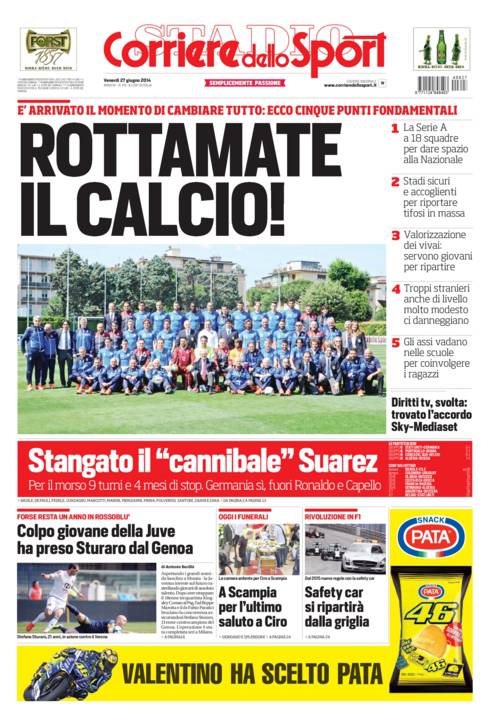 CORRIERE CALCIO – Il Corriere dello Sport indica i cinque punti fondamentali per far ripartire il calcio italiano. In primis la Serie A a 18 squadre.