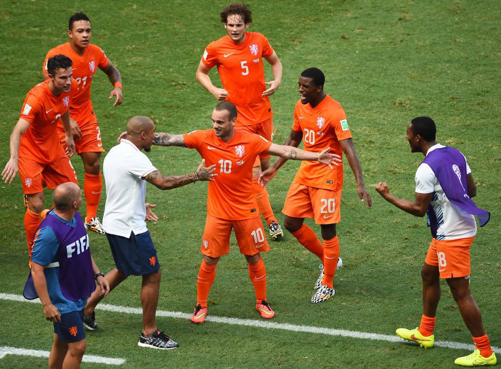 Olanda (3-5-1): Cillessen 5; de Vrij 5,5, Vlaar 6,5, Blind 6.5; Verhaegh 6 (56′ Depay 5.5), Wijnaldum 5, de Jong sv (9′ Martins Indi 5,5), Sneijder 7, Kuyt 5,5; Robben 7.5, van Persie 5,5 (76′ Huntelaar 7).