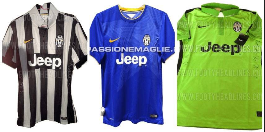JUVENTUS MAGLIE 2014/2015 – Ecco le nuove maglie della Juventus per la stagione 2014/2015. A svelarle sono stati il sito footyheadlines.com e passionemaglie.it. La prima maglia sarà quella classica bianconera con nove strisce verticali e il bordo delle maniche nere. Colletto nero all’esterno e bianco all’interno. Il logo dello scudetto dovrebbe essere sistemato al centro. Sarà blu, invece, la seconda maglia con sfumature di giallo mentre la terza maglia dovrebbe essere verde. Queste saranno le ultime maglie griffate Nike perché le prossime divise saranno firmate Adidas.