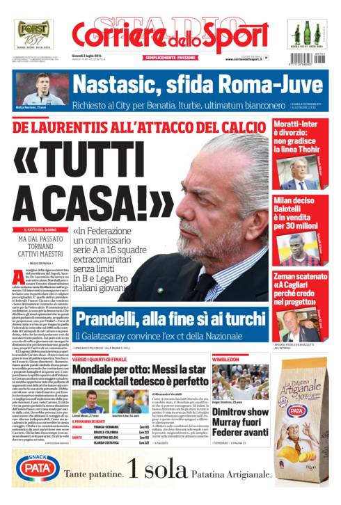 CORRIERE DE LAURENTIIS – Il presidente del Napoli De Laurentiis chiede cambiamenti radicali nel calcio italiano.