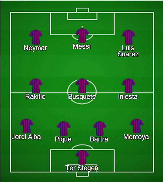 In porta il titolare dovrebbe essere Ter Stegen con Bravo, portiere del Cile ammirato ai Mondiali, pronto a subentrare in caso di necessità. In difesa nel caso in cui parta Dani Alves, potrebbe essere la stagione di Montoya: il terzino che proviene dalla Masia avrebbe finalmente modo di mettersi in luce senza rimanere schiacciato dalla concorrenza di altri giocatori. Della vecchia guardia ritroviamo Piquè il quale con l’addio al calcio di Puyol diventerà baluardo e bandiera del nuovo Barça. Al suo fianco Luis Enrique può contare su due alternative: arretrare Mascherano o dare fiducia a Bartra, altro interessante prodotto del vivaio catalano già autore di buone partite quando l’anno scorso fu chiamato in causa. A sinistra si giocano la fascia Jordi Alba e Adriano con il primo che appare leggermente favorito. A centrocampo Busquets rimane in mediana a fungere da cerniera con Mascherano pronto in caso di necessità. Iniesta si ritroverà a predicare il Tiqui Taca dopo la partenza di Xavi: al suo fianco ci sarà però Rakitic, l’investimento che il Barcellona ha fatto dal Siviglia. In attacco Leo Messi si ritroverà al suo fianco due dei giocatori più forti e chiacchierati del momento: da una parte Neymar, asso del Brasile, dall’altra Luis Suarez, mostruoso acquisto di questa estate. El Pistolero non sarà disponibile per quattro mesi vista la squalifica inflittagli dalla FIFA ma poco importa: i blaugrana lo hanno cercato e voluto con insistenza. Per vederlo in campo ci sarà però da attendere non solo l’ufficialità della trattativa ma anche la fine dello stop.