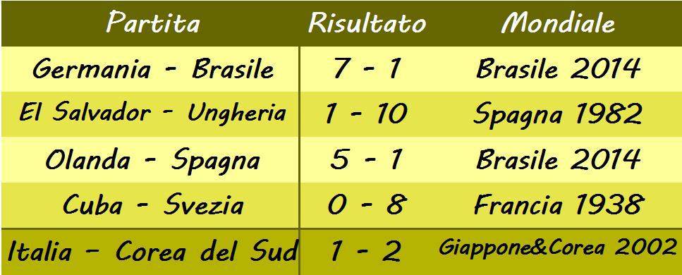 Abbiamo detto che non avremmo qui parlato soltanto di punteggi larghi ma di sconfitte clamorose. Dimenticare quella gara è impossibile: Ahn e compagni, ai tempi supplementari, mandano a casa gli italiani grazie al Golden Goal che già due anni prima li aveva condannati nella finale dell’europeo 2000. Avete per caso rimosso la direzione di gara dell’arbitro ecuadoregno Byron Moreno? Il rosso per Totti, una conduzione di gara approssimativa ed alcuni gialli tattici, certamente, hanno influenzato quella gara. Clamorosa quanto cocente per gli azzurri, Italia-Sud Corea va inserita certamente nelle sconfitte più clamorose dei mondiali.