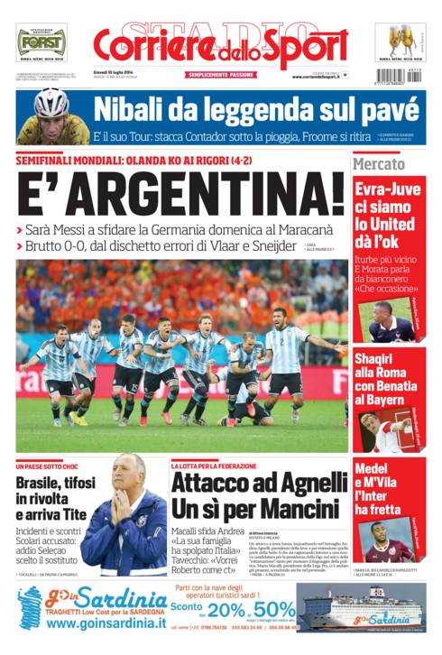 CORRIERE ARGENTINA – Sul Corriere dello Sport si parla dell’Argentina che vola in finale dopo la lotteria dei rigori contro l’Olanda.