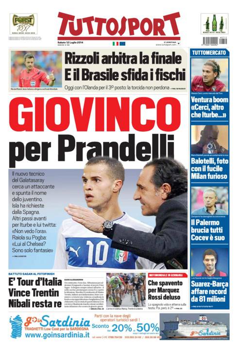 TUTTOSPORT GIOVINCO – Su Tuttosport si parla di un interesse del Galatasaray di Prandelli per Sebastian Giovinco.