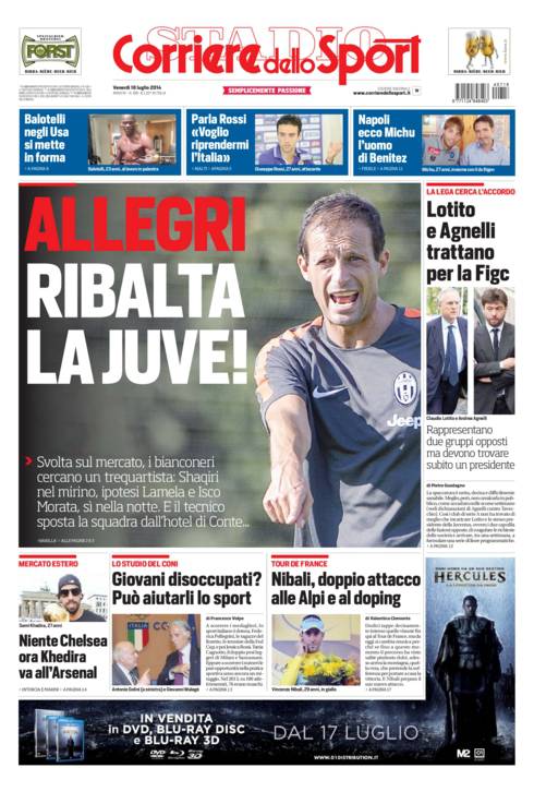 CORRIERE ALLEGRI – Il nuovo tecnico della Juventus ha deciso di cambiare obiettivi sul mercato. Intanto Morata è atteso a Torino.
