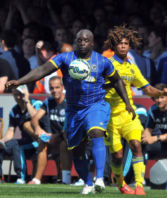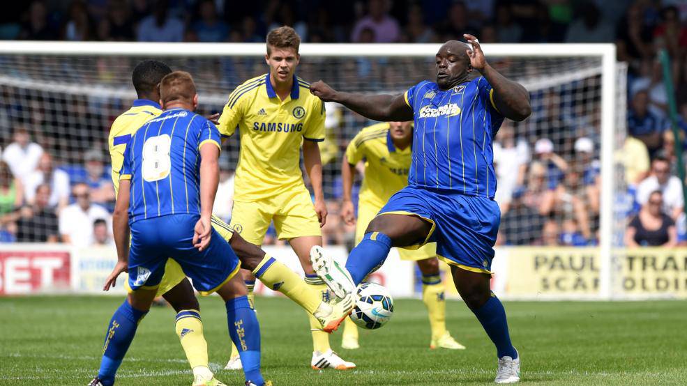FOTO CALCIATORE CICCIONE- Il calciatore più ciccione del mondo gioca nel Wimbledon. Si chiama Adebayo Akinfenwa, ha 32 anni, è inglese e gioca in attacco. Nell’amichevole che il suo club (quarta divisione) ha giocato contro il Chelsea l’attaccante è balzato subito agli occhi per la sua stazza, non esattamente da atleta.