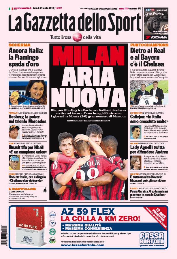 GAZZETTA MILAN – I rossoneri vincono due a zero contro il Monza mettendo in evidenza tanti giovani di talento tra cui Mastour.