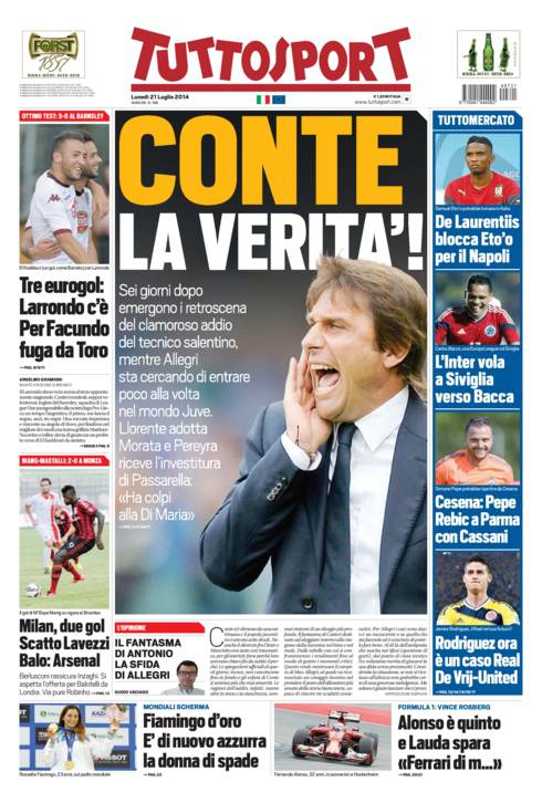 TUTTOSPORT CONTE – Emergono particolari importanti sull’addio di Antonio Conte dalla Juventus. I bianconeri intanto pensano ad altri rinforzi.