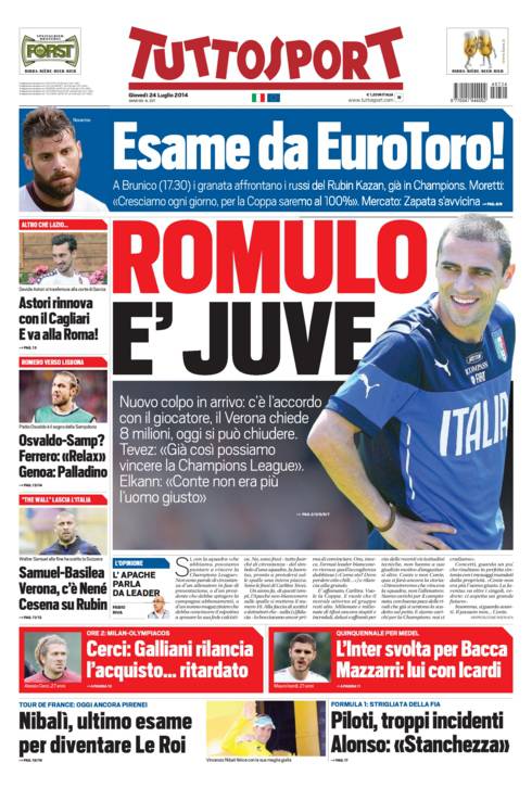 TUTTOSPORT JUVENTUS – Su Tuttosport si parla dell’arrivo alla Juventus di Romulo, centrocampista del Verona.