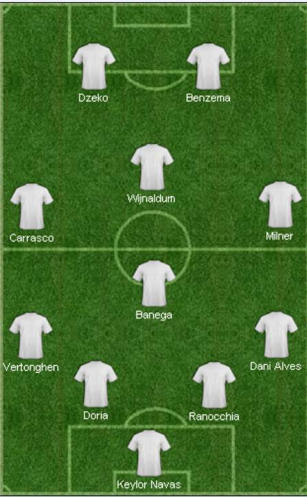 In porta tra Keylor Navas è una delle occasioni più allettanti; il contratto del portiere del Levante scadrà nel giugno 2015 anche se già in queste settimane il Real Madrid sta provando a strapparlo al club spagnolo. In alternativa potrebbe esserci Sirigu anche se l’ex Palermo dovrebbe rinnovare al 99% con il Psg. In difesa le occasioni sono sulle fasce con il bistrattato Dani Alves a destra e il belga Vertonghen a sinistra: entrambi si liberano a giugno 2015. Al centro spiccano i nomi del brasiliano Doria (il giocatore del Botafogo si svincola ad aprile 2015) e quello di Ranocchia. A centrocampo sia Banega che Milner offrono esperienza e qualità: difficile che entrambi prolunghino con Valencia e Manchester City. Accanto a loro ecco l’olandese Wijnaldum, giovane veterano del Psv. Sull’ala sinistra spicca il talentino argentino Carrasco del Monaco. In attacco spazio invece al tandem pesante Dzeko-Benzema: tutti e due andranno in scadenza nel giugno 2015.