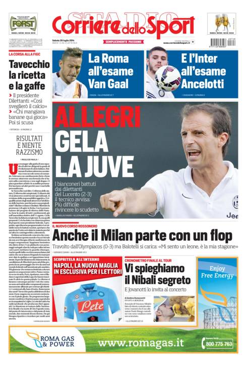 CORRIERE JUVENTUS – La Juventus perde in amichevole contro una squadra di Eccellenza per tre a due e ai tifosi parla di Scudetto difficile da vincere.