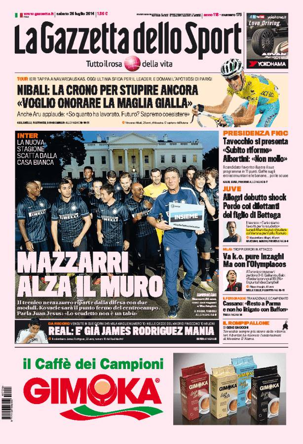 GAZZETTA MAZZARRI – La Gazzetta dello Sport parla dell’Inter con Mazzarri pronto a utilizzare due moduli per rinforzare la squadra.