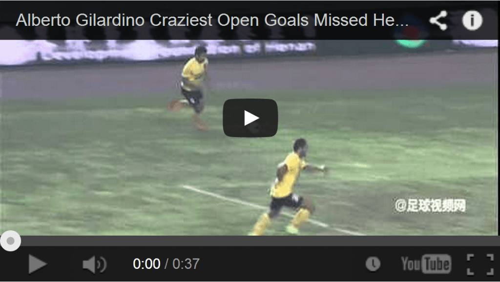 La partita vede di fronte il Guangzhou Evergrande e l’Henan Jianye: un compagno di squadra di Gilardino ruba palla ad un avversario quasi al limite dell’area spostato sulla sinistra del campo e mette in mezzo, dove a ricevere c’è proprio l’attaccante italiano. Il campione del Mondo, solo davanti al portiere, tira di prima, sparando alto in malo modo. Davvero una brutta figura.