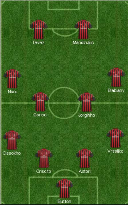 In porta scegliamo Buffon. Il portierone della Juventus, nell’era Calciopoli era praticamente un giocatore del Milan salvo poi giurare fedeltà eterna alla Vecchia Signora; assieme a Gigi avrebbe indossato la casacca rossonera pure Ibrahimovic ma l’Inter fu più veloce a fare la sua offerta non essendo invischiata in penalizzazioni varie. In difesa Vrsaljko era un promesso sposo del Milan, uno dei tanti affari provenienti dall’asse Milano-Genova: alla fine il croato è andato al Sassuolo. Al centro della difesa trovano spazio Astori, finito alla Roma dopo un lungo tira e molla con il club meneghino, e Criscito (adattato in questa posizione nonostante negli ultimi anni abbia giocato spesso sull’out destro) praticamente blindato dallo Zenit nonostante il ragazzo abbia a più riprese espresso la volontà di tornare in Serie A. Completa la linea dei quattro Cissokho, già del Milan ma rispedito al mittente dopo alcuni problemi durante le visite mediche: oggi il ragazzo scorrazza allegramente nella sua fascia di competenza. Nel calciomercato invernale Biabiany era l’esterno offensivo richiesto da Seedorf ma l’affare saltò improvvisamente e l’ex Inter rimase al Parma dove milita tutt’ora. Lo stesso dicasi per Nani. Tornando a ritroso nel tempo Ganso è un brasiliano accostato al Milan da anni: alla fine il centrocampista è sempre rimasto al San Paolo nonostante in molti dessero per fatta questa operazione. Al suo fianco ecco Jorginho nuovo talento del Napoli di Benitez: l’ex Verona era a un passo dai rossoneri salvo poi indossare la maglia partenopea. In attacco oltre al già citato Mandzukic, bollato come erede di Balotelli ma presto acquistato dall’Atletico Madrid, non può mancare Tevez: nonostente una cena con Galliani l’Apache è finito alla Juventus e non al Milan.