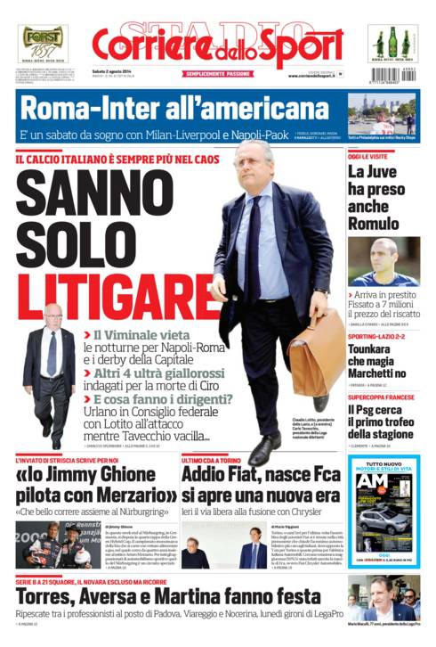 CORRIERE SERIE A – L’incontro di Lega ha visto i presidenti della Serie A litigare. Il calcio italiano verso lo sfascio.