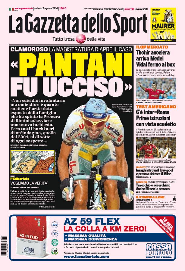 GAZZETTA PANTANI – A distanza di dieci anni la magistratura riapre il caso di Pantani, non fu suicidio ma omicidio.