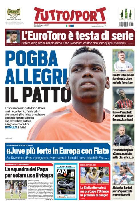TUTTOSPORT POGBA ALLEGRI – Paul Pogba è deluso dall’addio di Conte ma ha già fatto un patto con Allegri per la prossima stagione.