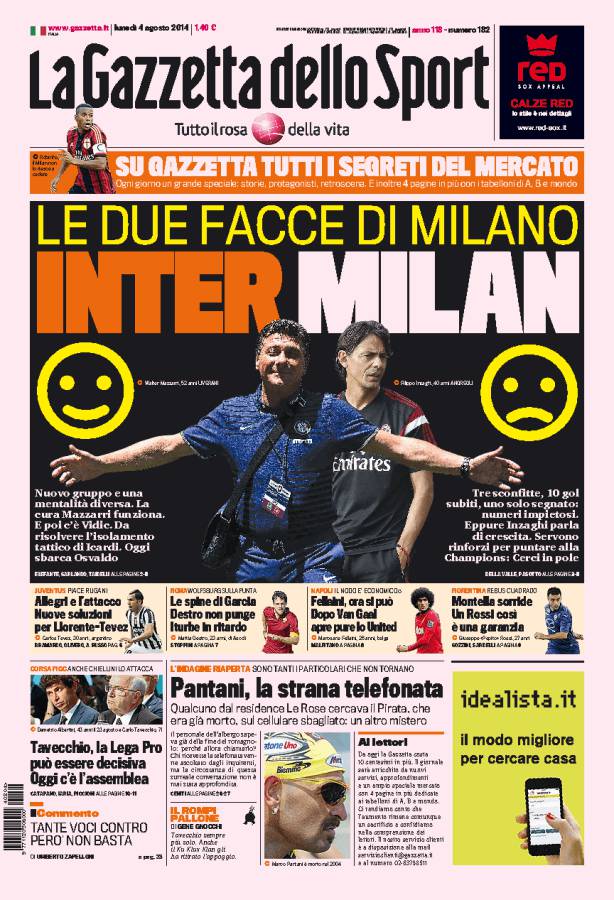 Gazzetta dello Sport – Le due facce di Milano 04/08/2014 di Ruggieri GAZZETTA INTER MILAN – La Gazzetta dello Sport parla di Inter e Milan che stanno vivendo due pre-campionati diversi. la redazione di Calciomercatonews.com