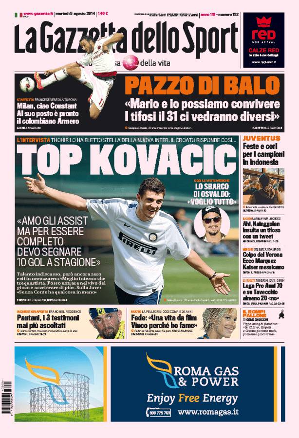 GAZZETTA KOVACIC – Intervista esclusiva con Mateo Kovacic da parte della Gazzetta dello Sport. Il talento dell’Inter ha parlato a 360 gradi.