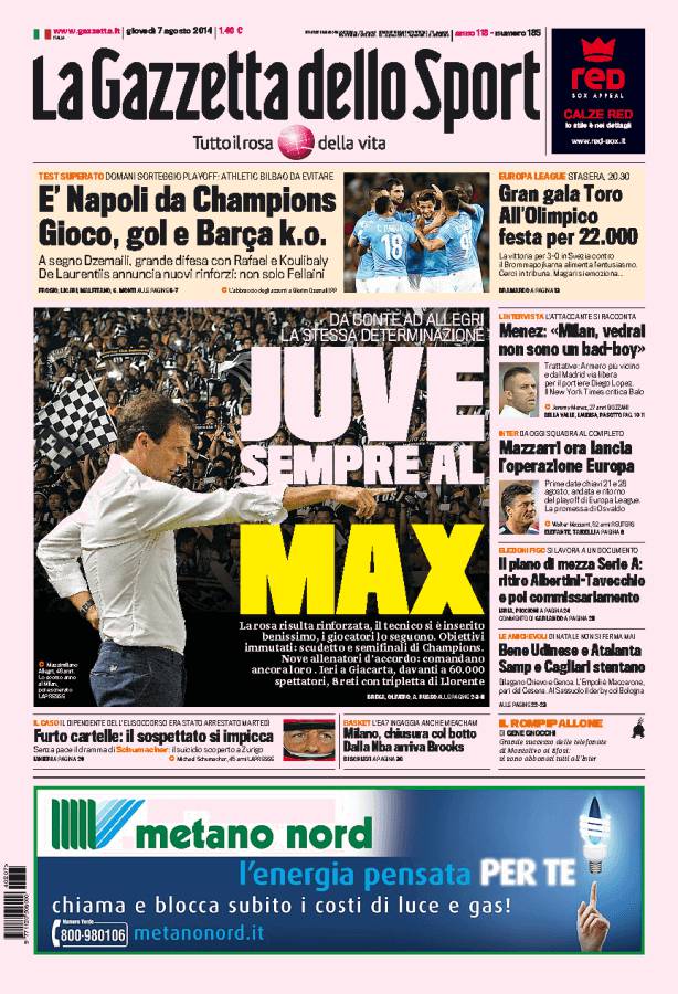 GAZZETTA ALLEGRI – La Juventus dimostra di avere la stessa grinta del passato anche con Allegri in panchina.