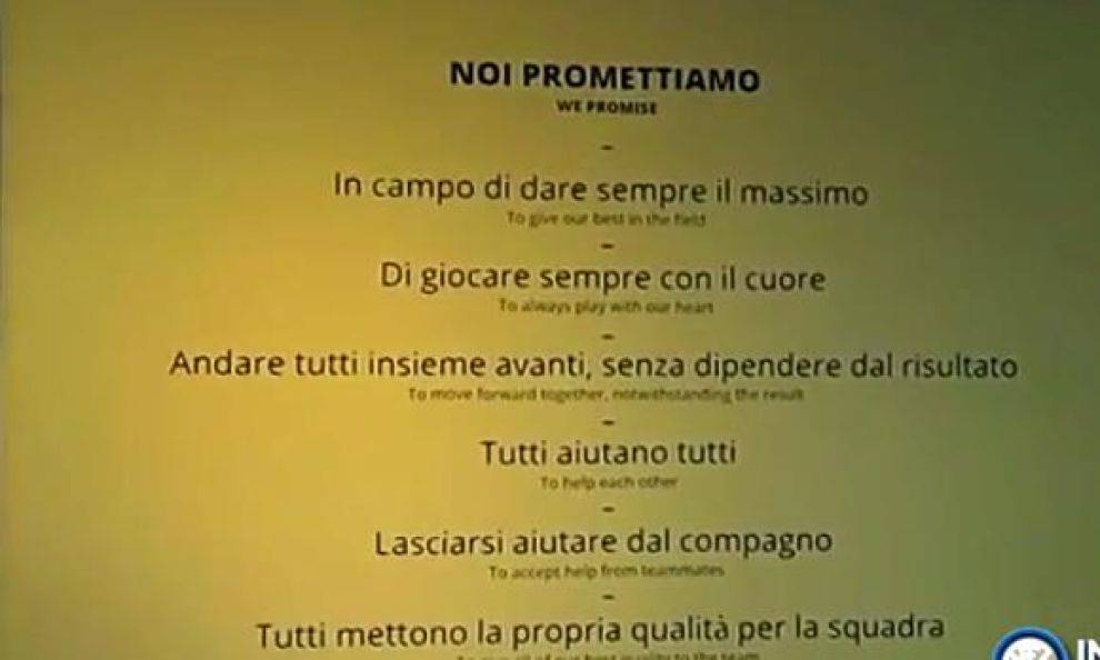 INTER – Ad Appiano Gentile è spuntato il muro delle promesse. Nel quartier generale nerazzurro, infatti, è stato creato un nuovo muro con una serie di promesse che dovrà essere firmato da tutti i calciatori, a cominciare dal capitano Andrea Ranocchia: “Noi promettiamo – si legge – di dare sempre il massimo; di giocare sempre con il cuore; di andare avanti tutti insieme senza dipendere dal risultato; tutti aiutano tutti; di lasciarsi aiutare dal proprio compagno; tutti mettono la propria qualità per la squadra; si vince, si perde, tutti si prendono la responsabilità; i problemi si risolvono insieme; di non arrenderci mai”.