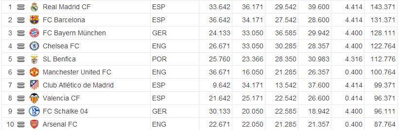 In vista dell’inizio della stagione è curioso vedere quali squadre sono al comando del ranking uefa. La squadra numero uno al mondo è il Real Madrid, campione d’Europa in carica, al secondo posto c’è il Barcellona e al terzo il Bayern Monaco. L’Atletico Madrid, finalista dell’ultima Champions, è al settimo posto. Nelle prime dieci non c’è una squadra italiana. La prima è infatti il Milan al 14esimo posto. Poi Juve e Inter che occupano il numero 22 e 23 della classifica.