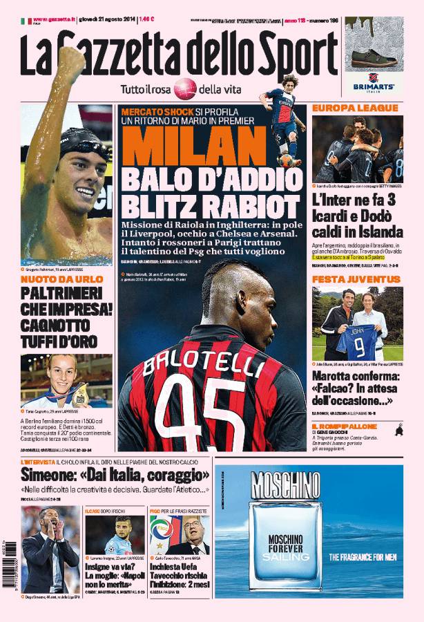 GAZZETTA MILAN BALOTELLI – La Gazzetta dello Sport parla del mercato Milan con il possibile addio di Balotelli e l’arrivo di Rabiot.