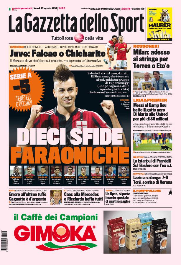 GAZZETTA EL SHAARAWY – El Shaarawy è uno dei dieci giovani talenti che vogliono iniziare bene il campionato. La Gazzetta parla di questi calciatori.