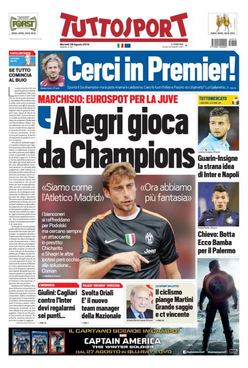 TUTTOSPORT MARCHISIO – Su Tuttosport vengono riportate le dichiarazioni di Marchisio che ha elogiato il modo di giocare di Massimiliano Allegri.