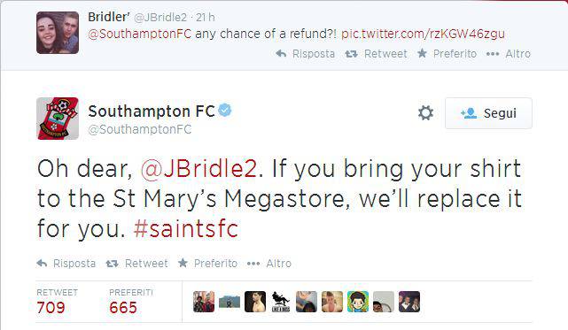Il triplo trasferimento in questa sessione di mercato di Saphir Taider ha sconvolto davvero tutti. Il centrocampista ex Bologna, adesso arrivato al Sassuolo, è stato infatti protagonista assoluto di uno dei casi più assurdi della storia del mercato. Trasferitosi dall’Inter al Southampton in prestito, dopo aver compreso di non avere chance per far parte stabilmente della rosa dei Saints, il calciatore otteneva di poter tornare all’Inter per trasferirsi infine in prestito al Sassuolo, con un’operazione avvenuta proprio nelle ultime ore del calciomercato. Una doppia cessione quella dell’Inter che lo aveva prima mandato in Inghilterra per poi richiamarlo alla base e girarlo alla squadra Emiliana. C’è chi però, tra i tifosi del Southampton, aveva apprezzato particolarmente quell’acquisto, decidendo addirittura di acquistare tutte e due le maglie, quella di casa e quella di trasferta, con dietro il nome del centrocampista algerino. Il giovane JBridle, tifoso dei Saints, con un tweet pubblicato nelle scorse ore, chiedeva al club, mostrando le foto delle divise, un rimborso visto l’addio repentino del calciatore. Nessun problema: il Southampton, come testimoniato in questa foto, ha prontamente risposto al tifoso proponendo uno scambio con una nuova shirt di un nuovo calciatore. Lieto fine per tutti quindi…