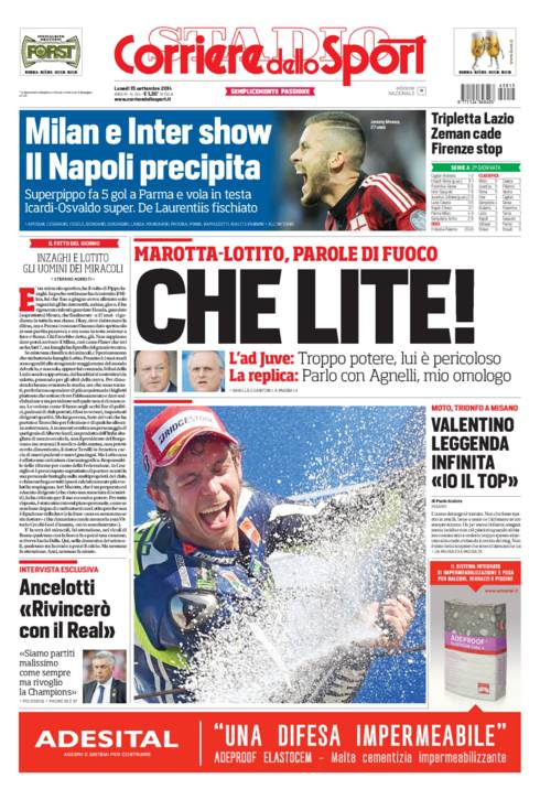 Il Corriere dello Sport punta il dito contro la lite tra Marotta, a.d. della Juventus e Claudio Lotito, presidente della Lazio.
