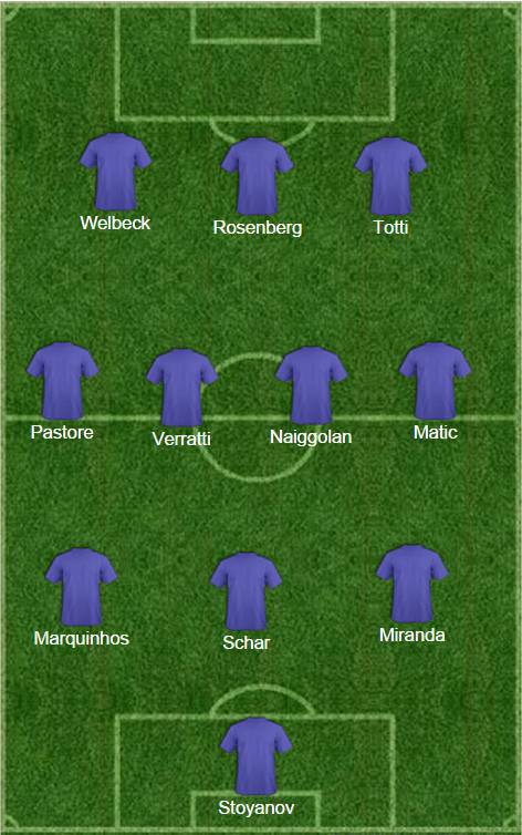 In questa Top 11 in porta c’è Stoyanov, portiere del Ludogorec, protetto da Marquinhos ex Roma ora al Paris Saint Germain, Schar e Miranda, che ieri ha battuto la Juventus con il suo Atletico Madrid. Centrocampo a quattro con Pastore, Verratti, in gol contro il Barcellona, Naiggolan e Matic. Tridente avanzato con Welbeck, Rosenberg e Totti, assoluto protagonista della bellissima sfida contro il Manchester City.