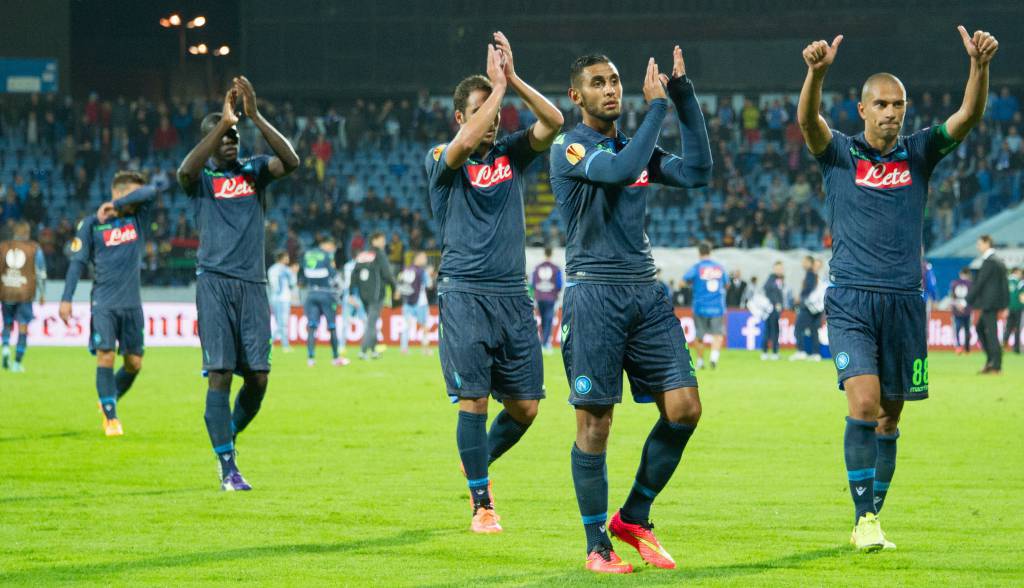 NAPOLI (4-2-3-1): Rafael 6; Maggio 6, Koulibaly 7, Britos 6,5, Ghoulam 5,5; Inler 5,5, Lopez 6; Mertens 5,5, Hamsik 7 (34′ st Mesto s.v.), De Guzman 5 (18′ st Callejon 6); Zapata 6 (28′ st Higuain 6,5). A disp.: Andujar, Henrique, Gargano, Insigne. All.: Benitez 7