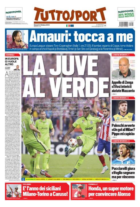 Anche Tuttosport parla della sconfitta della Juventus usando un titolo molto simile a quello della Gazzetta dello Sport.