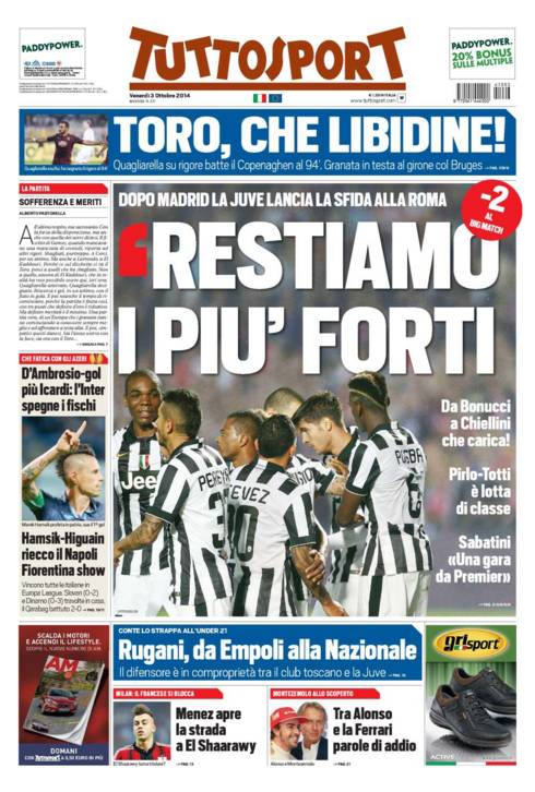 Su Tuttosport invece si parla della Juventus che si prepara al grande match di domenica sera contro la Roma.