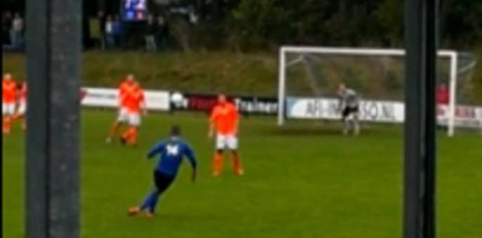 Signori e signore, direttamente dall’Olanda, ecco a voi la punizione più folle della storia del calcio. Nel filmato che è stato pubblicato su You Tube, l’attaccante colpisce il pallone di “rabona” e la palla scavalca il portiere avversario che resta stupefatto di fronte al gesto tecnico dell’avversario. Purtroppo, però, la traversa nega all’attaccante la gioia del gol ma la punizione resta assolutamente un capolavoro.