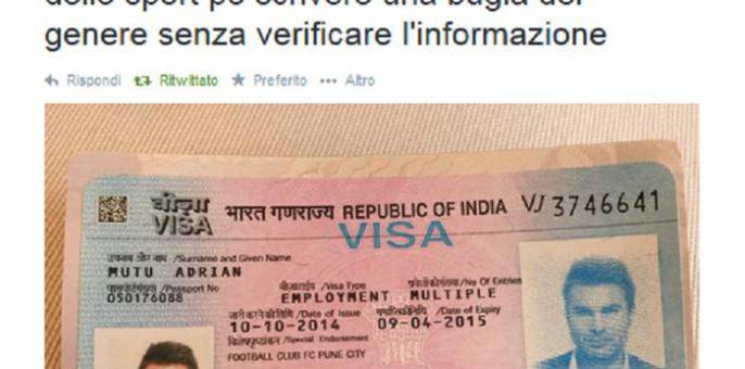 Torna a far rumore Adrian Mutu. L’attaccante rumeno, infatti, ha pubblicato un tweet in cui attacca apertamente la Gazzetta dello Sport, rea di aver pubblicato una notizia sul suo conte senza verificarla. Il sito della Gazzetta, infatti, riportando come fonte la stampa rumena, aveva riportato la notizia della mancata concessione del visto a Mutu, in procinto di legarsi col Pune Fc, da parte dell’ambasciata indiana a Bucarest. Nel racconto della Gazzetta, Mutu si sarebbe presentato ubriaco e avrebbe anche minacciato un dipendente dell’ambasciata. Questa mattina, sul suo profilo Twitter, Mutu ha voluto chiarire la vicenda pubblicando la foto del visto e il seguente tweet: “Non capisco!! Un giornale come La Gazzetta dello Sport può scrivere una bugia del genere senza verificare l’informazione”.