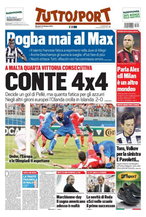 Tuttosport sottolinea il fatto che l’Italia non brilla ma con Conte quarta vittoria consecutiva. Decisivo il gol di Pellé.