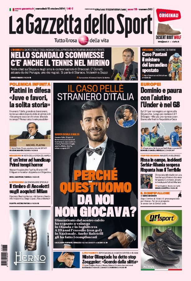 Sulla Gazzetta dello Sport si parla di Graziano Pellé, bomber del Southampton e della Nazionale italiana, che in Serie A ha trovato poco spazio.