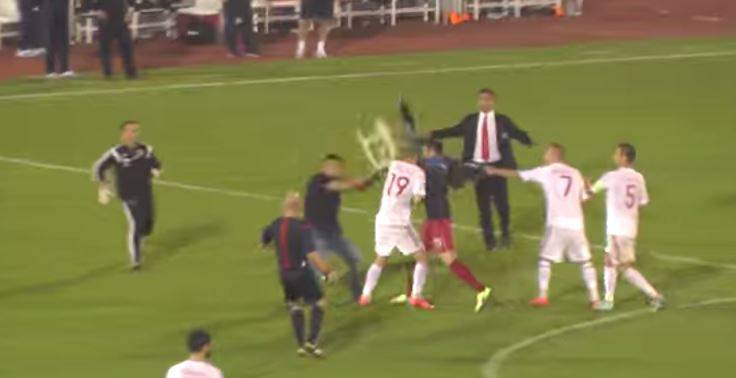 Attimi di violenza, di panico, terrore. Tutto ciò che il calcio non rappresenta è stato ieri sera messo in scena durante Serbia-Albania, delicatissima gara di qualificazioni per Euro 2016. Davvero incomprensibile come l’Uefa, cercando di seguire lo slogan che “il calcio unisce”, abbia deciso comunque di far disputare la partita, nonostante i chiari segnali di grande tensione tra le due compagini. Ciò che era stato previsto è puntualmente accaduto e non possiamo che essere testimoni di questa bruttissima vicenda che, ripetiamo ancora, non ha nulla a che fare con il calcio e rappresenta in realtà una situazione politica burrascosa tra Albania, Serbia ed il Kosovo, nazione autoproclamatasi indipendente. Molte delle immagini degli scontri, riferite al momento dell’abbattimento del drone a cui era stata attaccata una bandiera albanese, sono state censurate ma direttamente da Youtube è arrivato un filmato davvero incredibile, realizzato dagli spalti. Eccovi le immagini della brutale rissa avvenuta ieri sera: