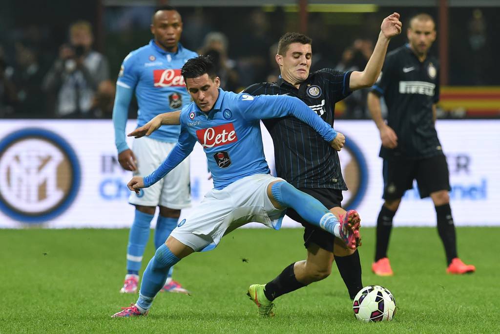 SERIE A INTER NAPOLI – Pareggio per 2-2 fra Inter e Napoli che si dividono la posta in palio nel primo dei due posticipi di questa settima giornata di campionato. Gli spettatori di San Siro hanno dovuto attendere fino al 79′ per il primo gol, messo a segno da Callejon grazie anche ad un errore di Vidic. Ma dopo tre minuti i padroni di casa trovano il pareggio con il neo entrato Guarin. Al 90′ gli azzurri sembrano avere i tre punti in tasca quando Callejon firma la doppietta, ma dopo appena un minuto ci pensa Hernanes a pareggiare i conti. Un punto che serve poco ad entrambe le squadre.