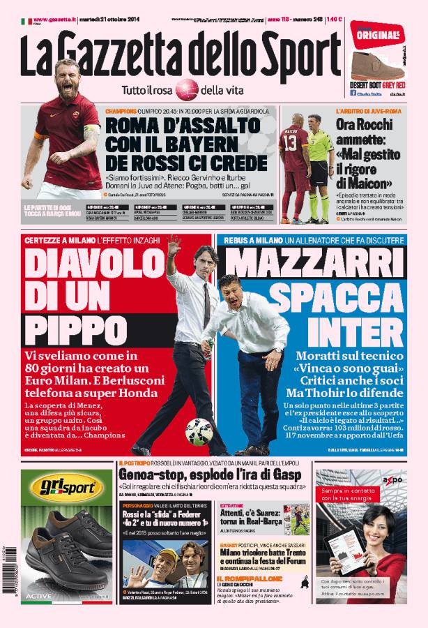 Sulla Gazzetta dello Sport uno dei titoli in evidenza riguarda il Milan di Inzaghi che vola in classifica.
