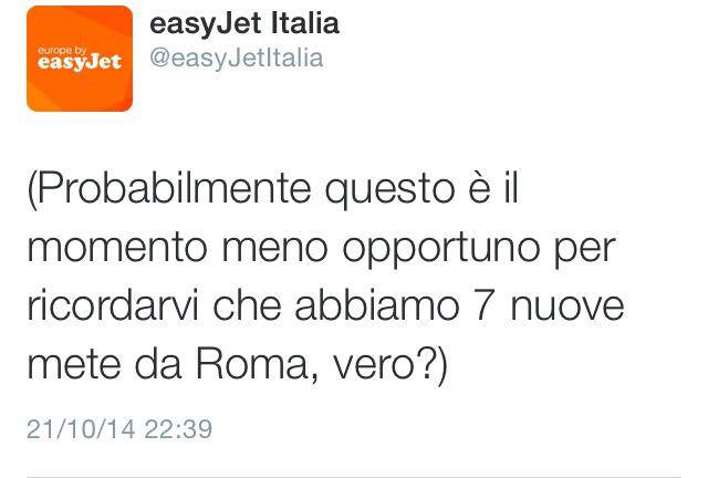 Il 7-1 rifilato dal Bayern Monaco alla Roma ha scatenato anche l’ironia delle compagnie aeree. Non bastavano i commenti ironici dei tifosi avversari che hanno invaso i vati social network con post e foto di ogni genere, il popolo giallorosso deve sopportare anche l’ironia di Easy Jet che, forse, con il tweet in questione, ha rinunciato a una buona fetta di clienti. Subito dopo la disfatta giallorossa, infatti, il profilo Twitter di Easy Jet Italy ha postato un messaggio che è diventato subito virale: “Probabilmente questo è il momento meno opportuno per ricordarvi che abbiamo 7 nuove mete da Roma, vero?”.